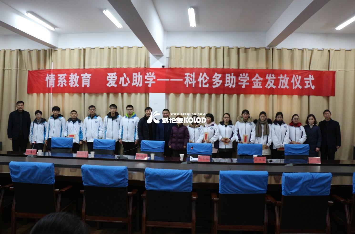 贈人玫瑰,手有余香;奉獻愛心,收獲希望。2018年12月13日下午,江蘇科倫多食品配料有限公司董事長總經(jīng)理封寬裕,副總經(jīng)理翁京蓉赴灌云縣高級中學參加主題為“情系教育愛心助學”的愛心捐贈活動。在活動儀式上,江蘇科倫多食品配料有限公司副總經(jīng)理翁京蓉代表公司,向灌云縣高級中學高一至高三強化班33名優(yōu)秀學生每人頒發(fā)了2000元的愛心助學金,總計金額66000元。這次愛心助學活動對每一個受資助的學生來說,收獲的不僅僅是物質(zhì)上的資助,更是精神上的鼓勵。對于實施資助的企業(yè)來講,資助一個優(yōu)秀學生,就是溫暖一個家庭,就會改變一個學生的命運,通過受資助學生的勤學苦學、持之以恒的努力,就有可能成為對社會有用的人才。圖為江蘇科倫多食品配料有限公司董事長總經(jīng)理封寬裕,副總經(jīng)理翁京蓉,赴灌云縣高級中學參加“情系教育愛心助學”的愛心捐贈活動時的場景圖片。
