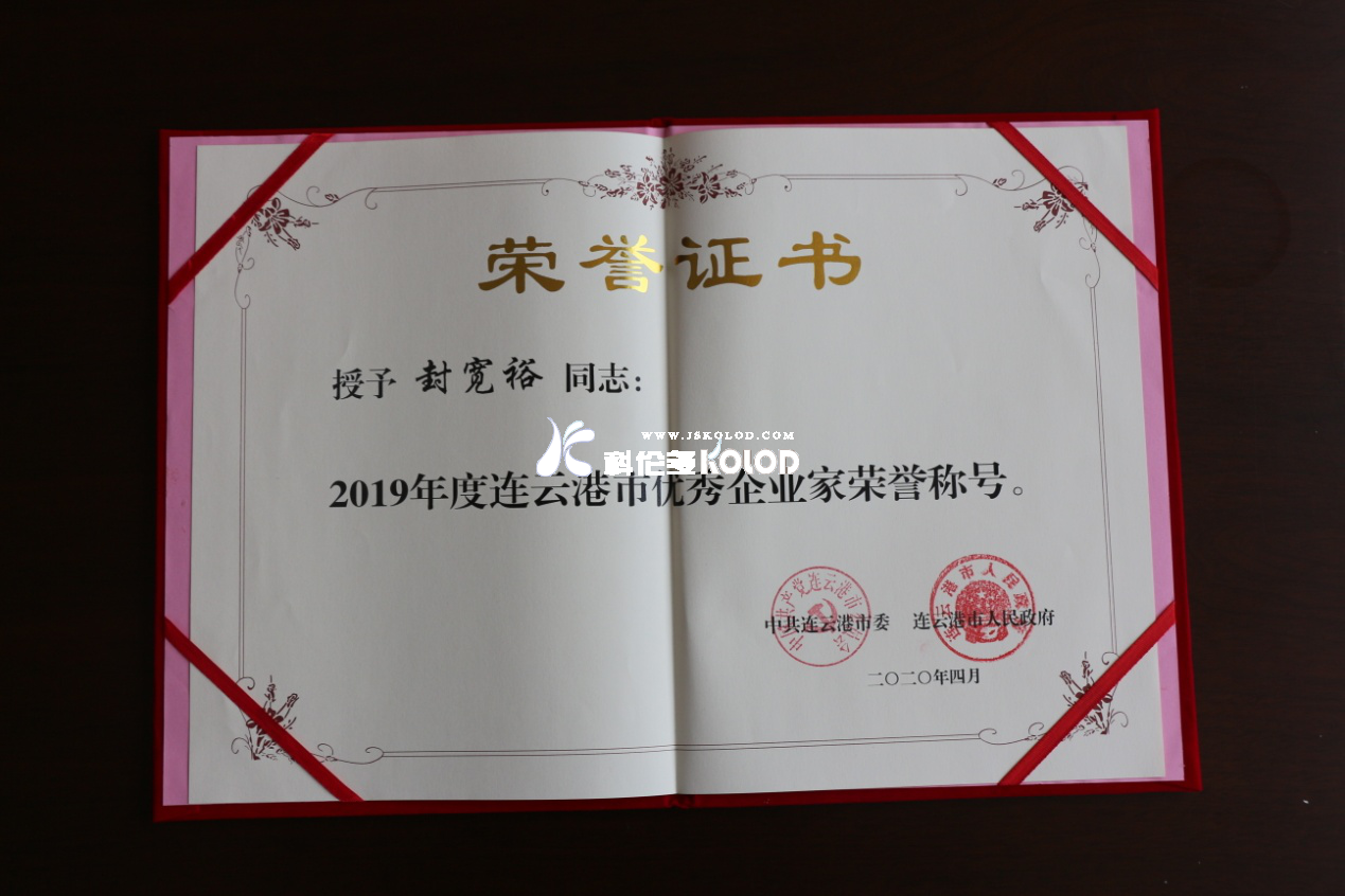 2020年4月29日、30日,喜報連傳,江蘇科倫多食品配料有限公司董事長封寬裕,榮獲2019年度連云港市優秀企業家榮譽稱號;次日,公司又榮獲灌云縣2019年度財稅貢獻獎光榮稱號。
