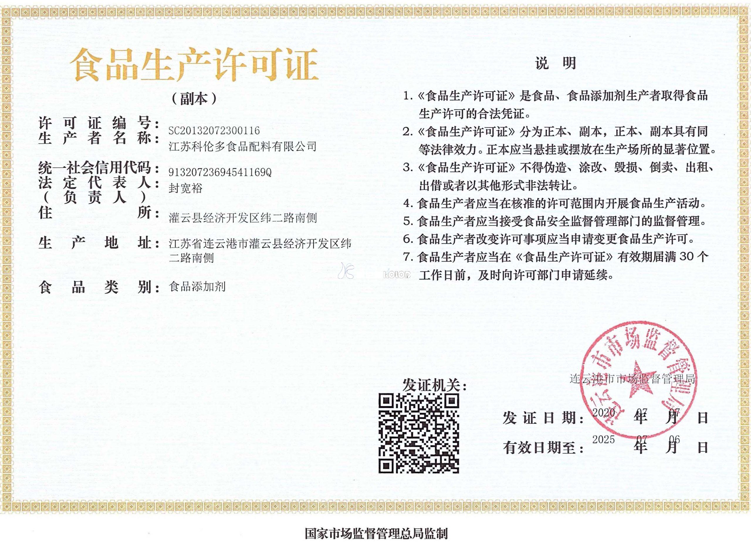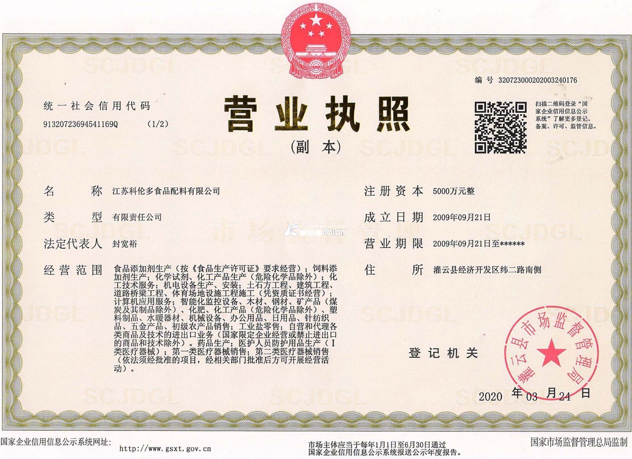名 ?稱:江蘇科倫多食品配料有限公司