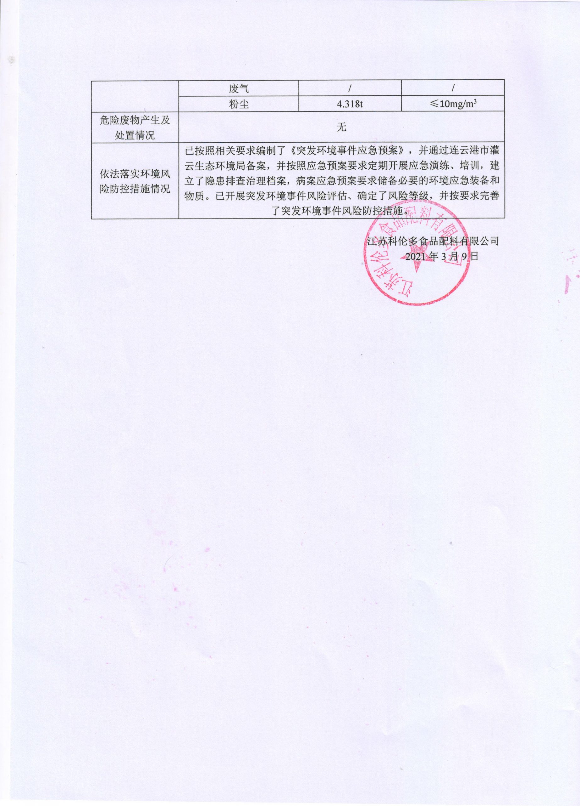 江蘇科倫多食品配料有限公司清潔生產環境信息公示